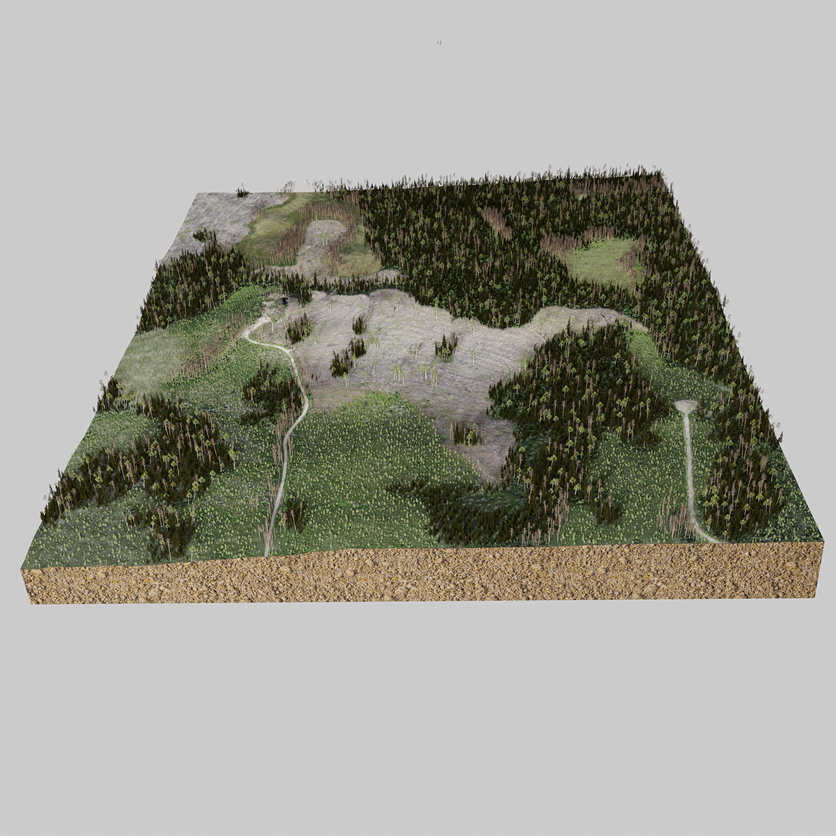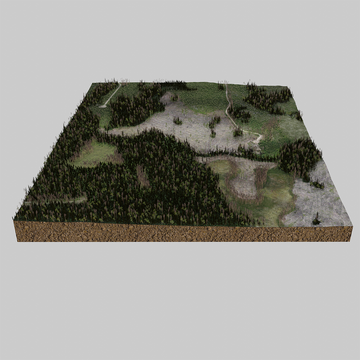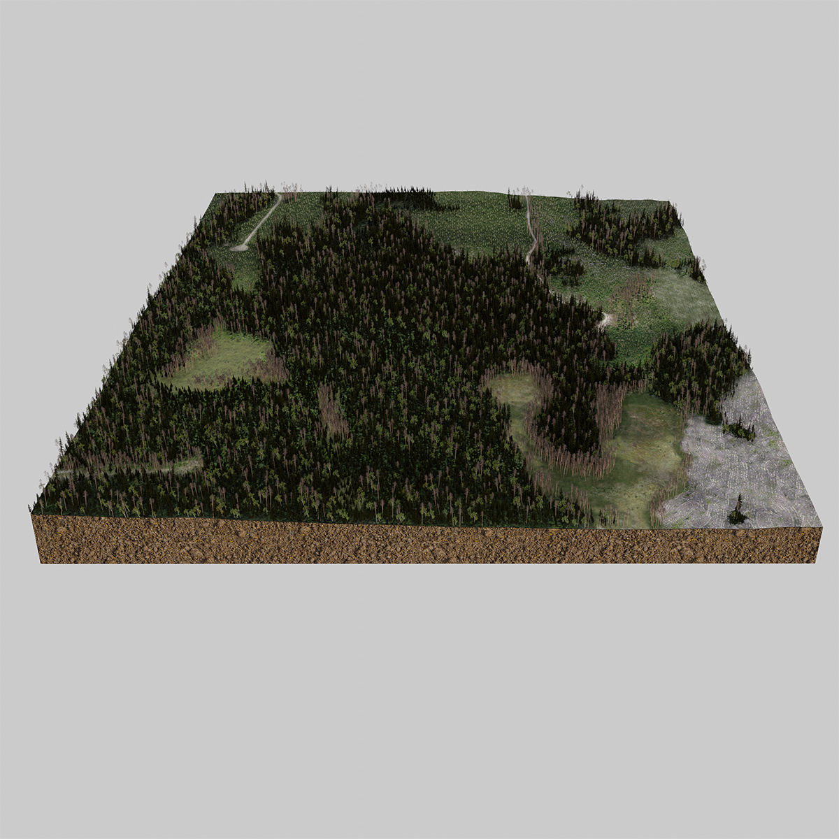 The clear-cut area is 13.5 hectares in size. Before felling, a dense, old-growth forest of Norway spruce grew here. The forest was populated with many old Goat willows, and many of these were covered with the lichen species Tree lungworth. In the tall Bilberry, that covered the ground, laid fallen spruce logs. A small creek crosses the forest, and here the water jumps and splashed between the rocks. The forest was logged by the state-owned and FSC-certified forestry company Sveaskog. The company felled all the trees accept the goat willows, some small tree groups, and a slim strip along the creek.