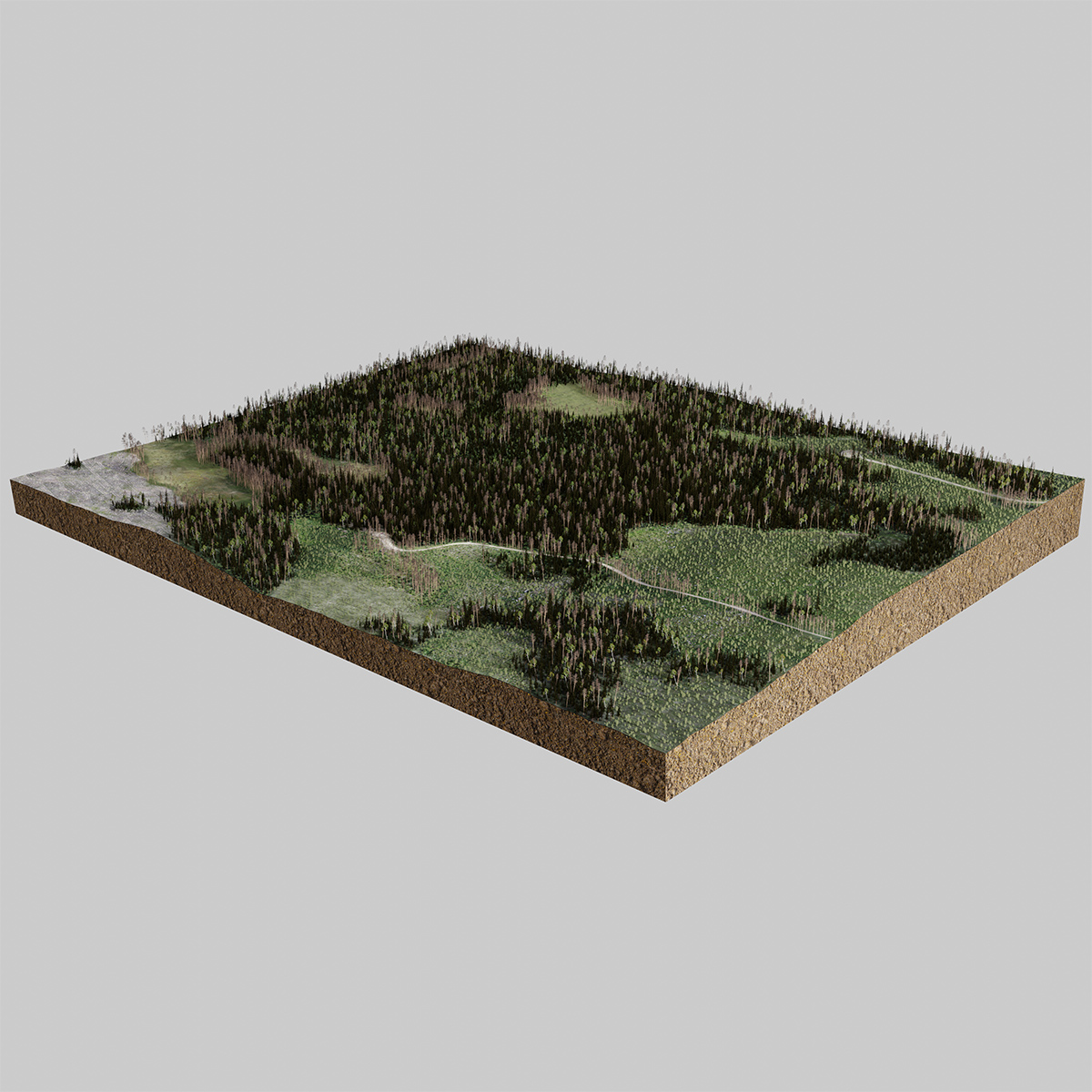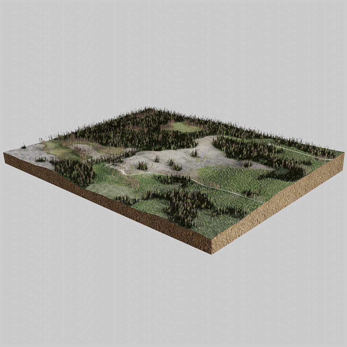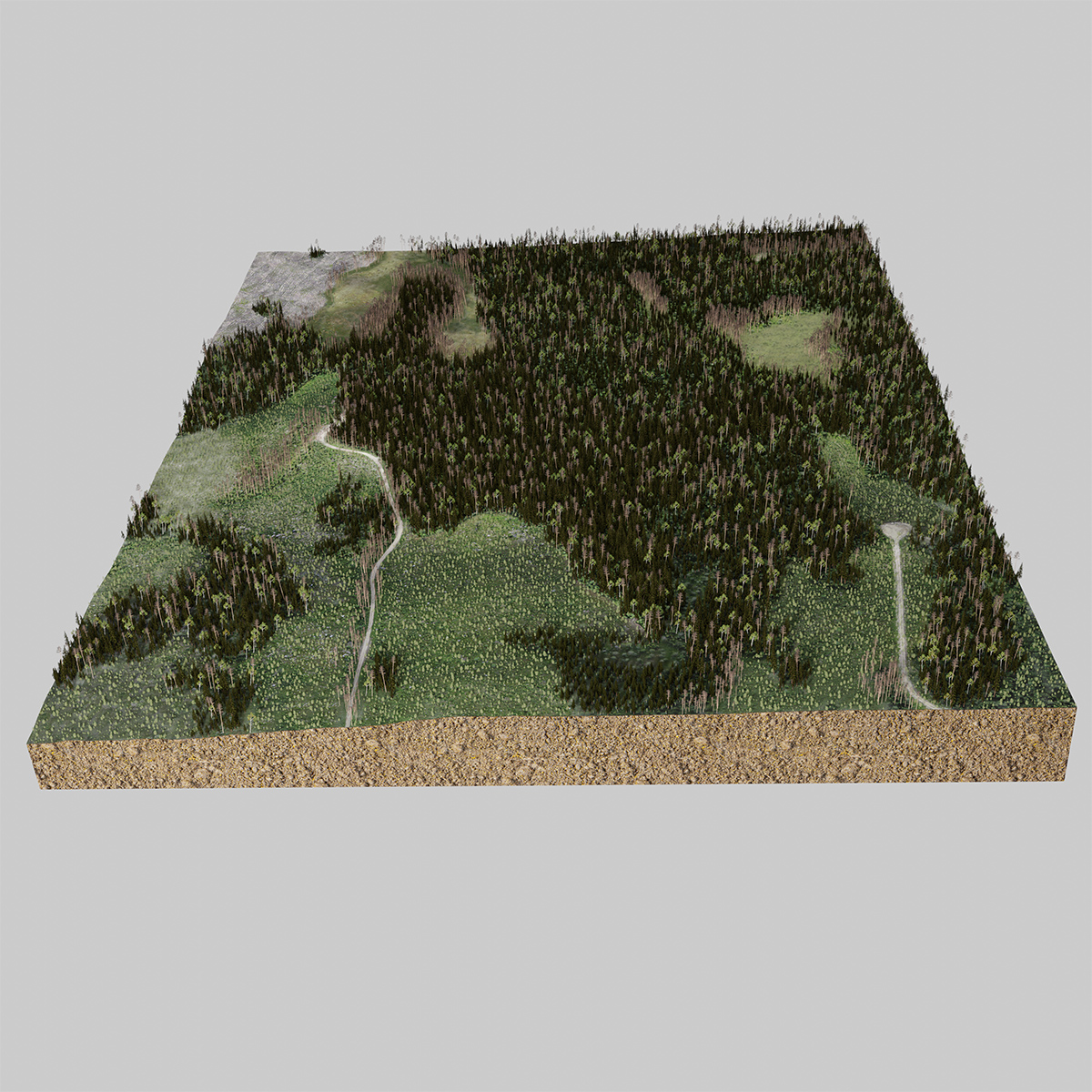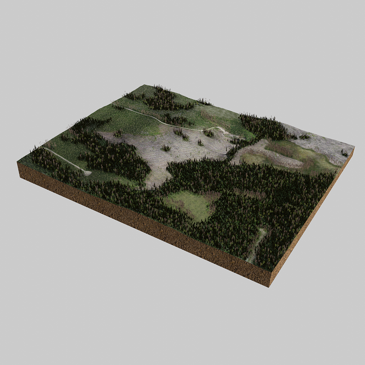 The clear-cut area is 13.5 hectares in size. Before felling, a dense, old-growth forest of Norway spruce grew here. The forest was populated with many old Goat willows, and many of these were covered with the lichen species Tree lungworth. In the tall Bilberry, that covered the ground, laid fallen spruce logs. A small creek crosses the forest, and here the water jumps and splashed between the rocks. The forest was logged by the state-owned and FSC-certified forestry company Sveaskog. The company felled all the trees accept the goat willows, some small tree groups, and a slim strip along the creek.