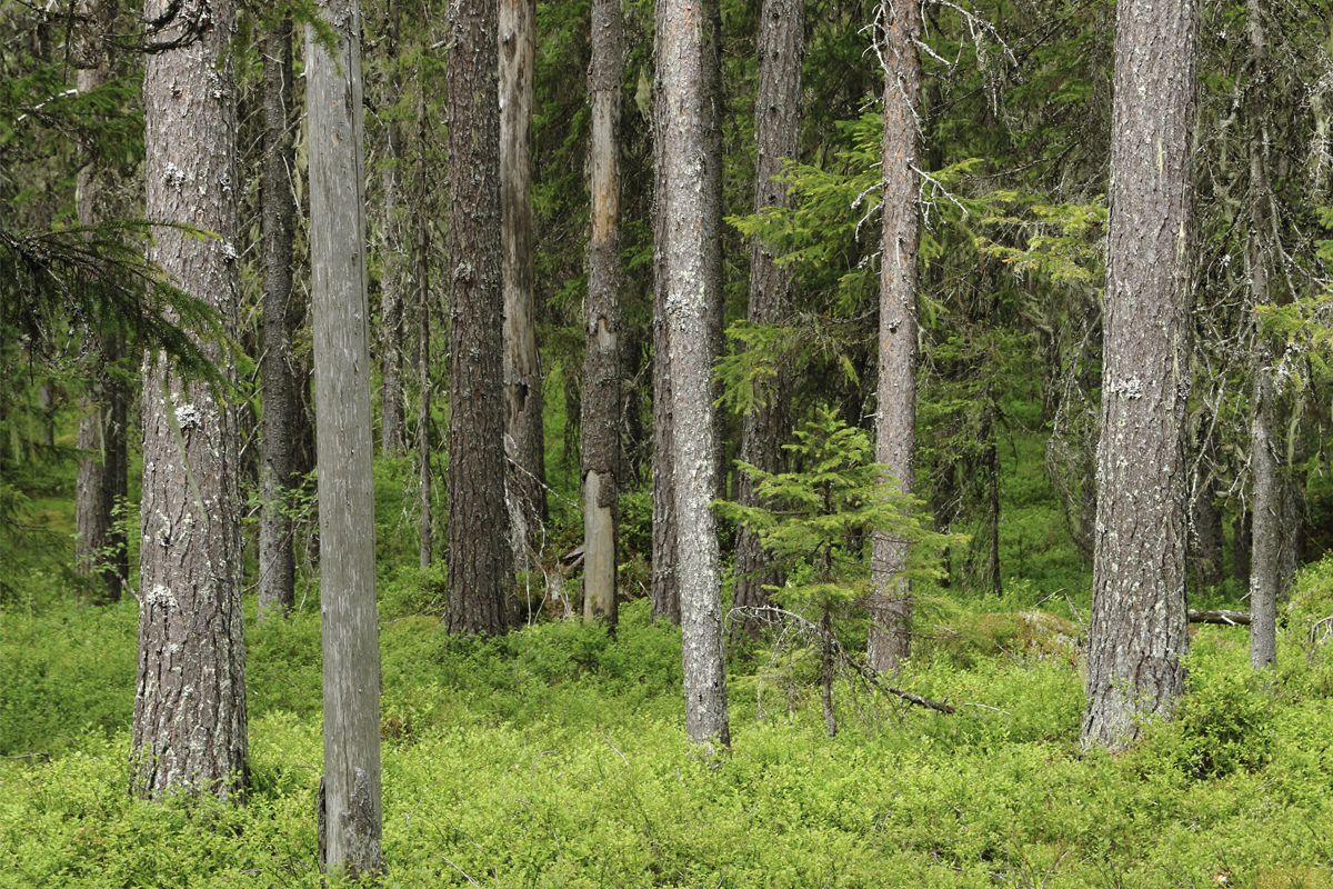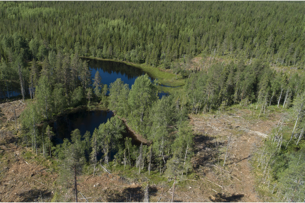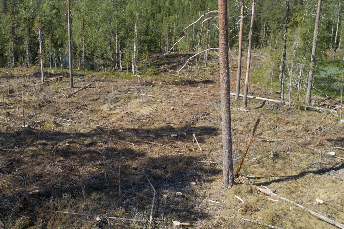 Bilder före och efter. Här ser du foton på den gamla skogen och bilder som är tagna efter avverkningen. Lägg märke till den enorma förändringen avverkningen inneburit.