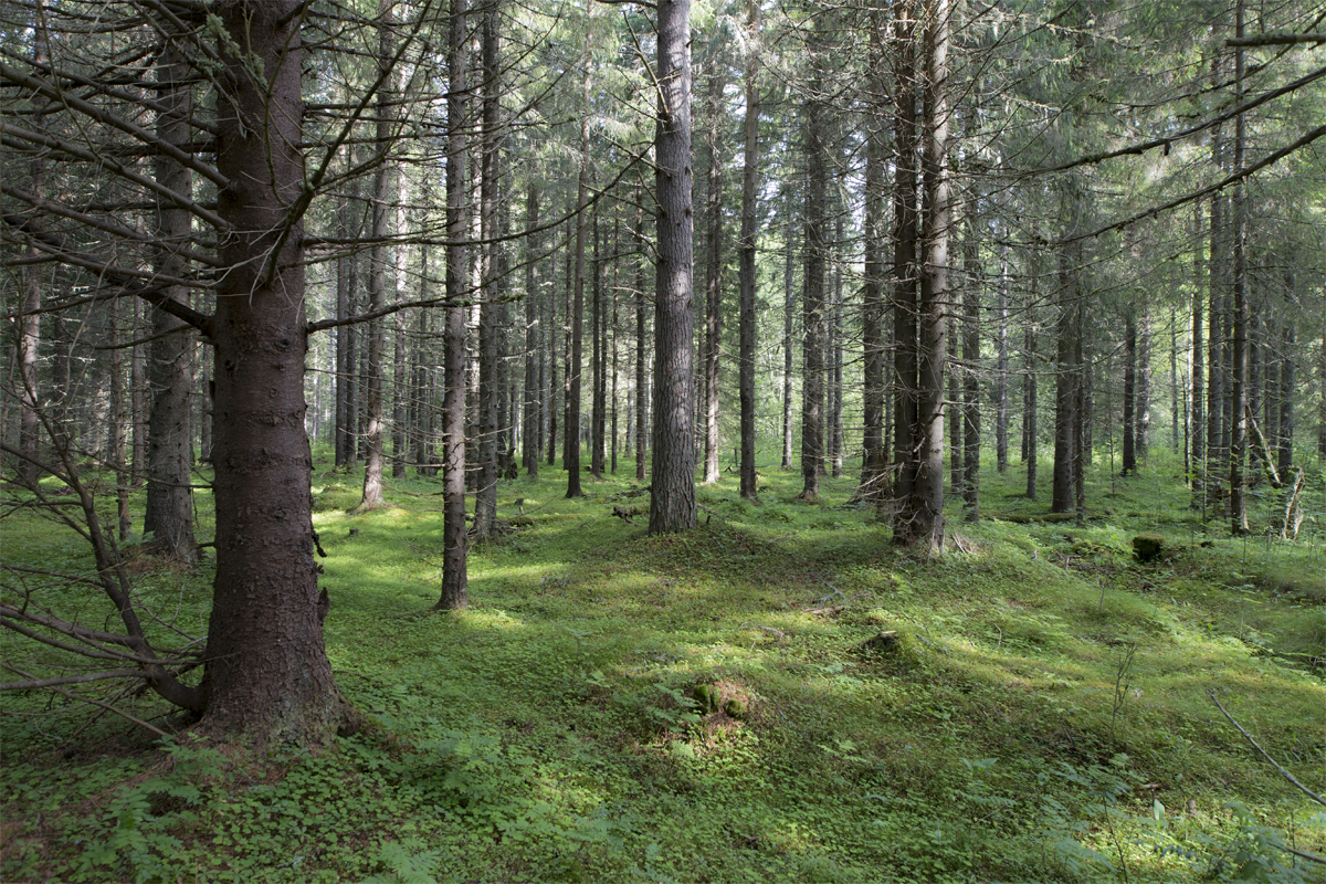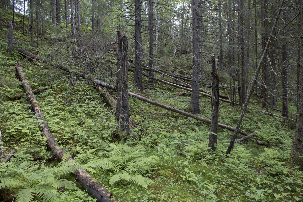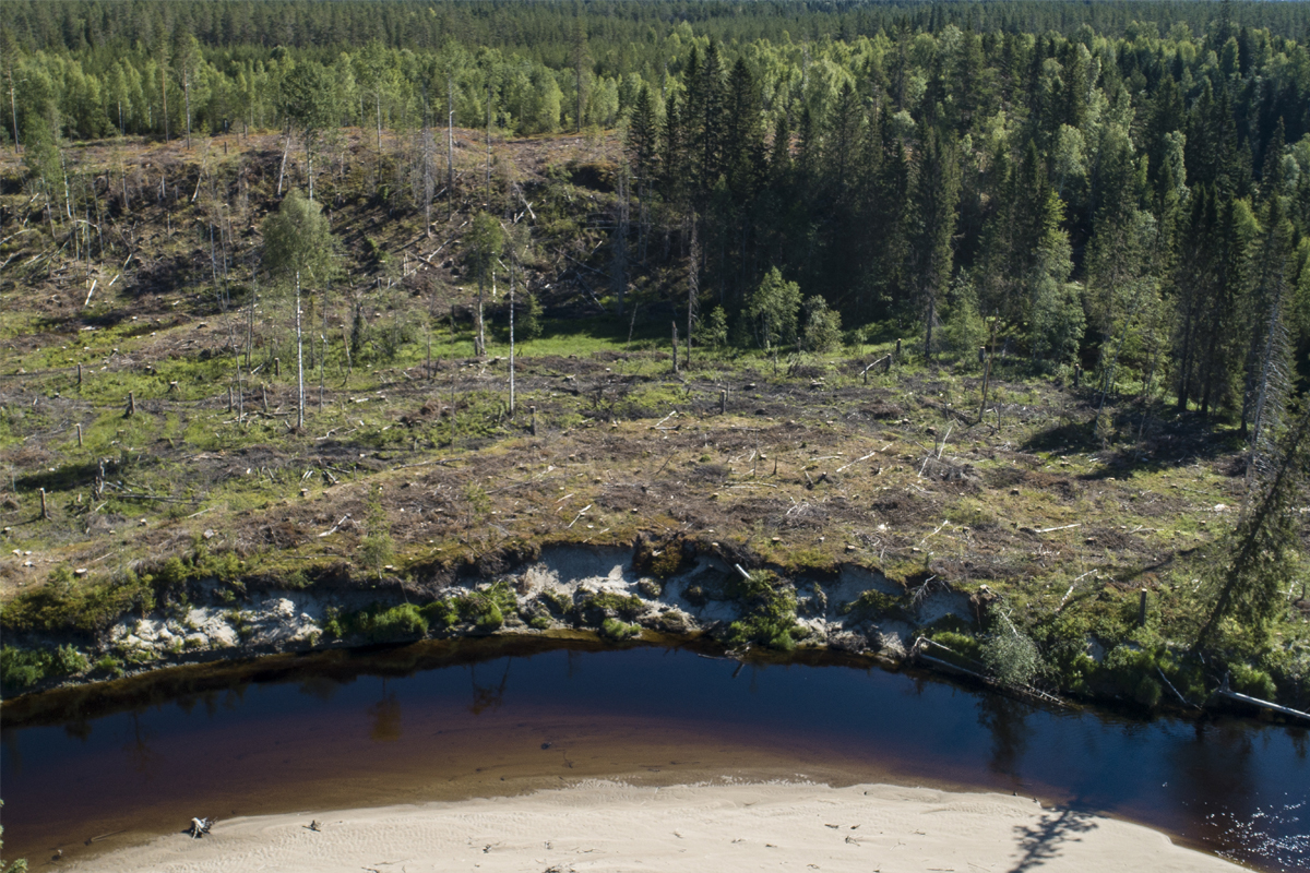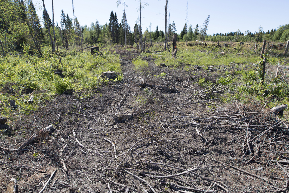 Bilder före och efter. Här ser du foton på den gamla skogen och bilder som är tagna efter avverkningen. Lägg märke till den enorma förändringen avverkningen inneburit.